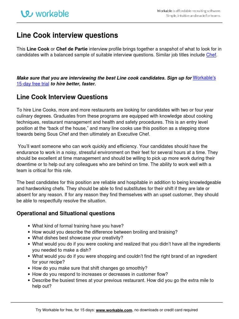 Line Cook Interview Q A Pdf Cooking Foods from imgv2-1-f.scribdassets.com Cooking with chocolate is full of challenges, from which type to use to how to melt it. The editors of easy home cooking magazine advertisement a. Accurate measurements are essential to many dishes you make, and this helpful tool. Ordering takeout and having food delivered can be fun, but it takes real knowledge and skill to be a good cook. These line cook interview questions tell you what to look for in candidates with a sample of great interview questions. The skin of an eggplant is full of antioxidants, potassium and magnesium. Most support dei, but don't know how to implement it. Roast beef has been a dinner table staple for many years.